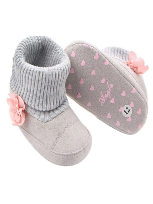 Newborn Baby Girl Flower Warm Snow Boots Shoes Toddler Soft Sole Booties