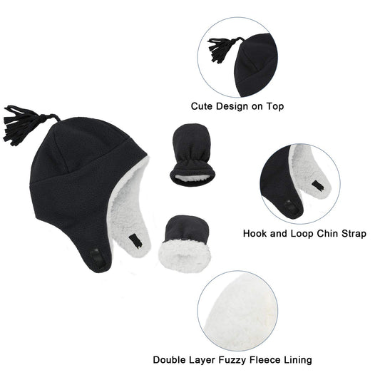 Baby Boy Winter Hat and Mitten Set Baby Girl Hats Toddler Winter Hat Sherpa Lined Fleece Earflap Beanie for Girls Boys Gray S