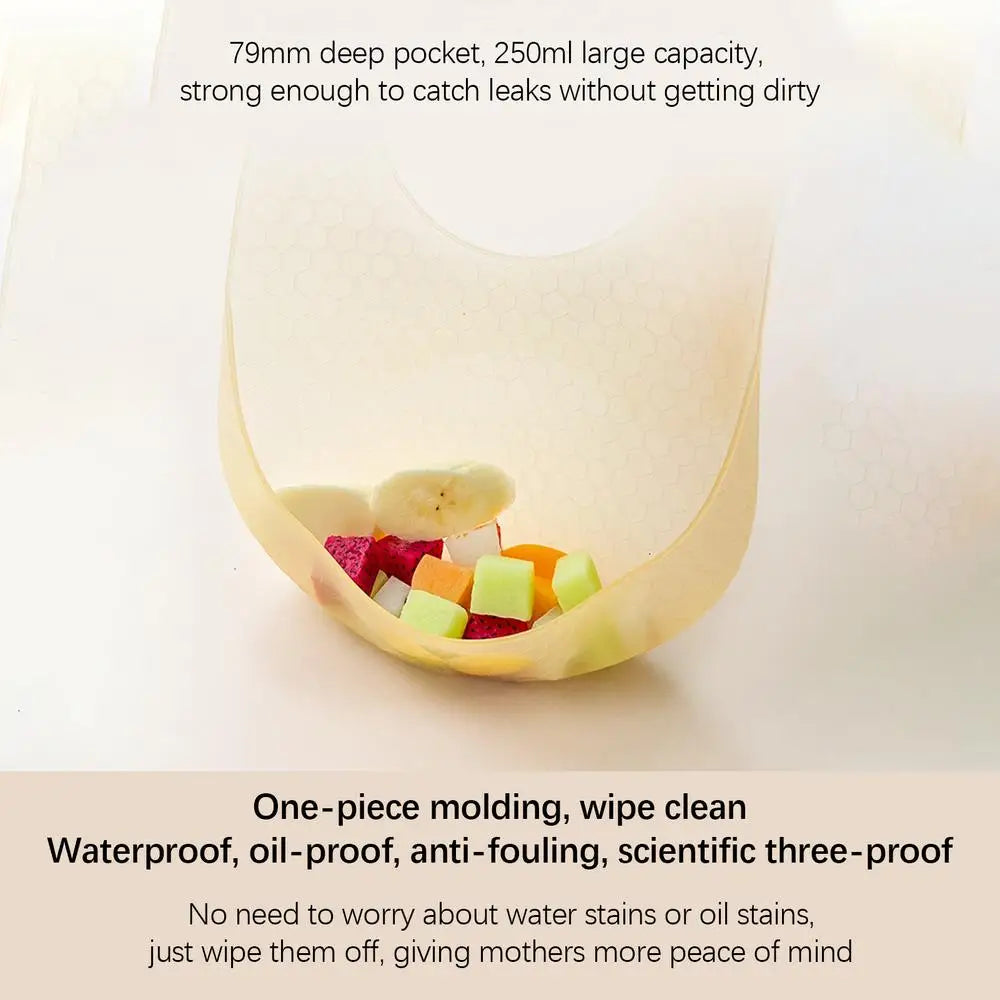 Keep mealtime mess-free with this durable, waterproof bib! It is designed with silicone lightweight, easy-to-clean material and offers full coverage to protect your little one’s clothes. Featuring an adjustable closure for a comfy fit and a built-in food catcher, it's perfect for everyday use at home or on the go!